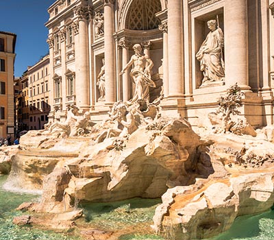 Going back to the fountain, it takes its name from the Trevi “Rione” or Quarter, that in turn derives from “trivio” literally “three ways”. The history of this fountain, of medieval origins, is connected to that of the Acqua Vergine (Vergin Water) which goes back much further. Tradition has it that the name “Acqua Vergine” derives from the fact that it was a beautiful nymph to show Emperor Agrippa the spring. None other than Gian Lorenzo Bernini began work on the fountain before soon coming to a halt but the fountain is to be considered one of the last magnificent testimonies of the Roman late Baroque.