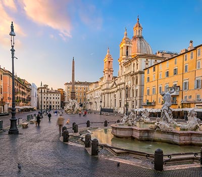 The square took its present form thanks to Pope Innocent X (John Baptist Pamphilij) who wished to celebrate his reign. In fact, it was his rather ambitious, power craving young sister in law, Lady Olimpia, who the Romans not too kindly referred to as “Pimpaccia”, who managed to have the Bernini appointed for the design of the square.